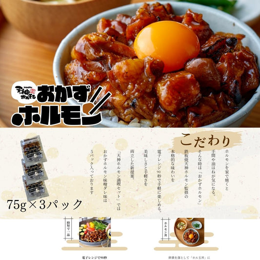 ついに登場!湯煎で6分温めるだけ!天神ホルモン自慢の国産丸腸を使用した【おかずホルモンPREMIUM】3パックセット